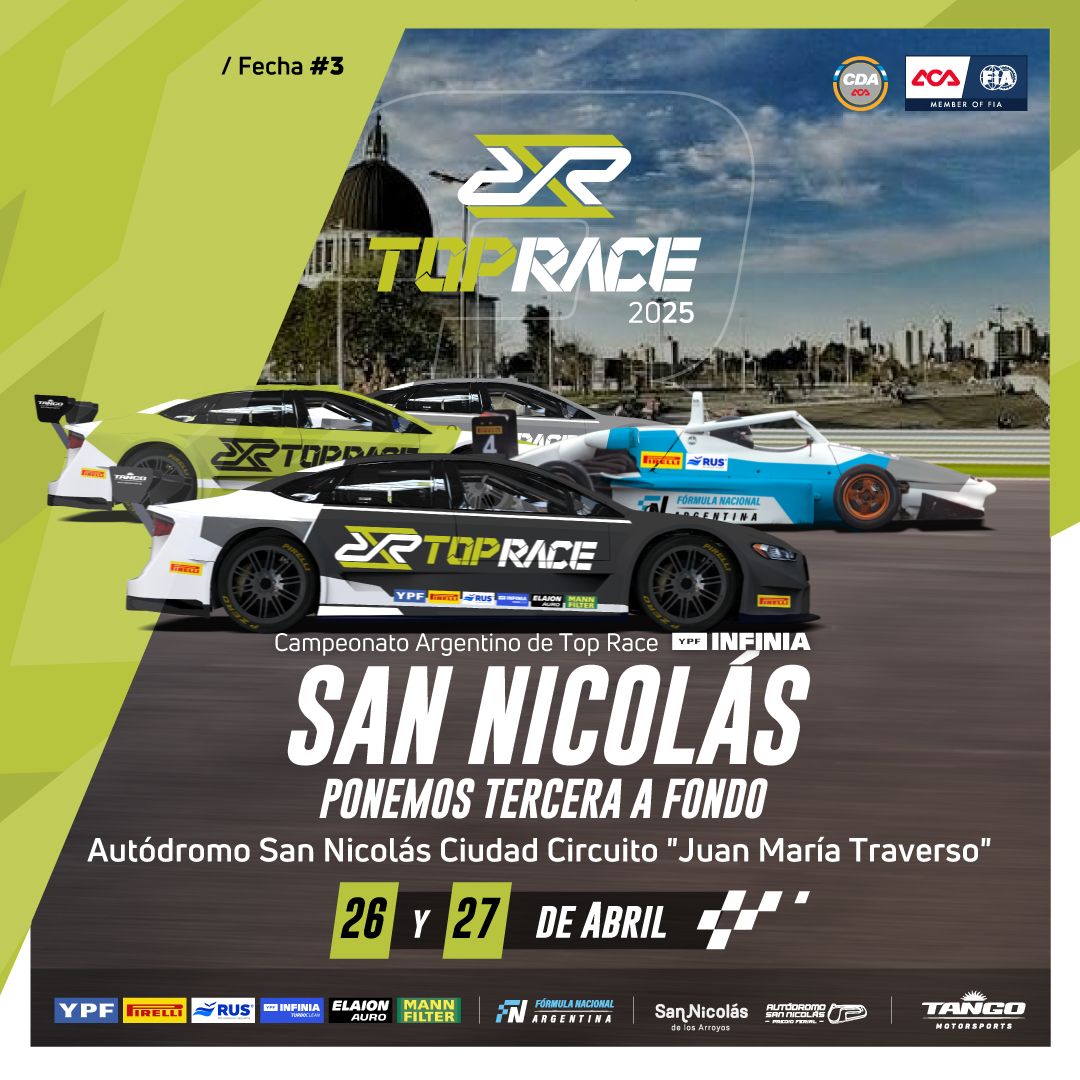 El 26 y 27 de abril, llega a San Nicolás la 3º fecha del Campeonato Argentino de Top Race que, junto a la 2º fecha el Campeonato Argentino de Fórmula Nacional, harán que el circuito Juan María Traverso sea el epicentro de un fin de semana a pura velocidad y potencia con los mejores pilotos del país.
