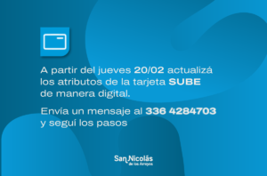 El jueves 20 de febrero a partir de las 12:00 quedará habilitado el sistema para actualizar los atributos de la Tarjeta SUBE para todos aquellos que tengan algún tipo de beneficio en el valor del boleto. A partir de ahora, podrán hacer el trámite a través de SantIA, enviando un mensaje al 3364 28 4703.