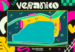 Desde la Municipalidad de San Nicolás confirmaron la disposición de los diferentes sectores como el escenario, los foodtrucks y baños. El estacionamiento estará en la pradera ubicada en Sarmiento entre Bustamante y José Ingenieros.